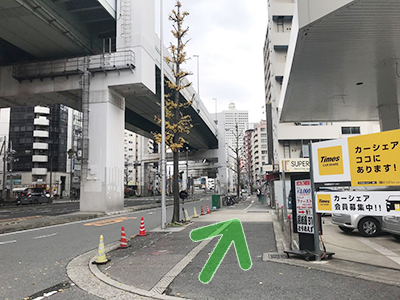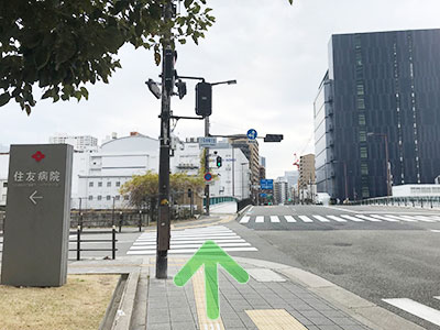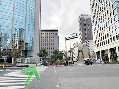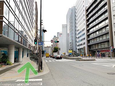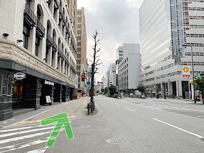 - しばらく直進していただくと「土佐堀1」の交差点に着きます。信号も渡って頂き直進して下さい。