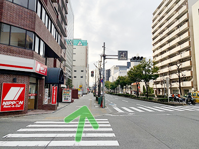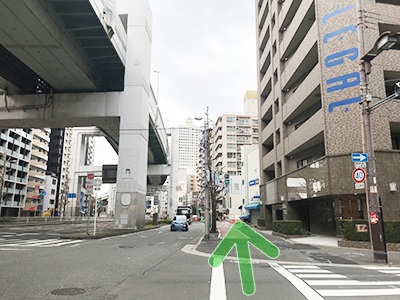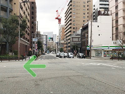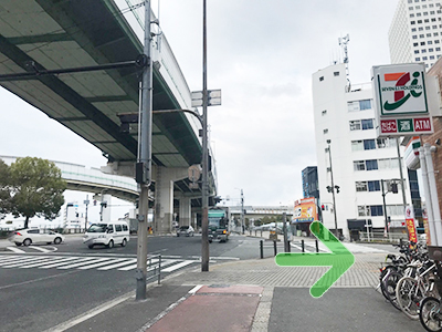 - 右手にセブンイレブンさんがある「土佐堀3」の交差点を右に曲がって下さい。